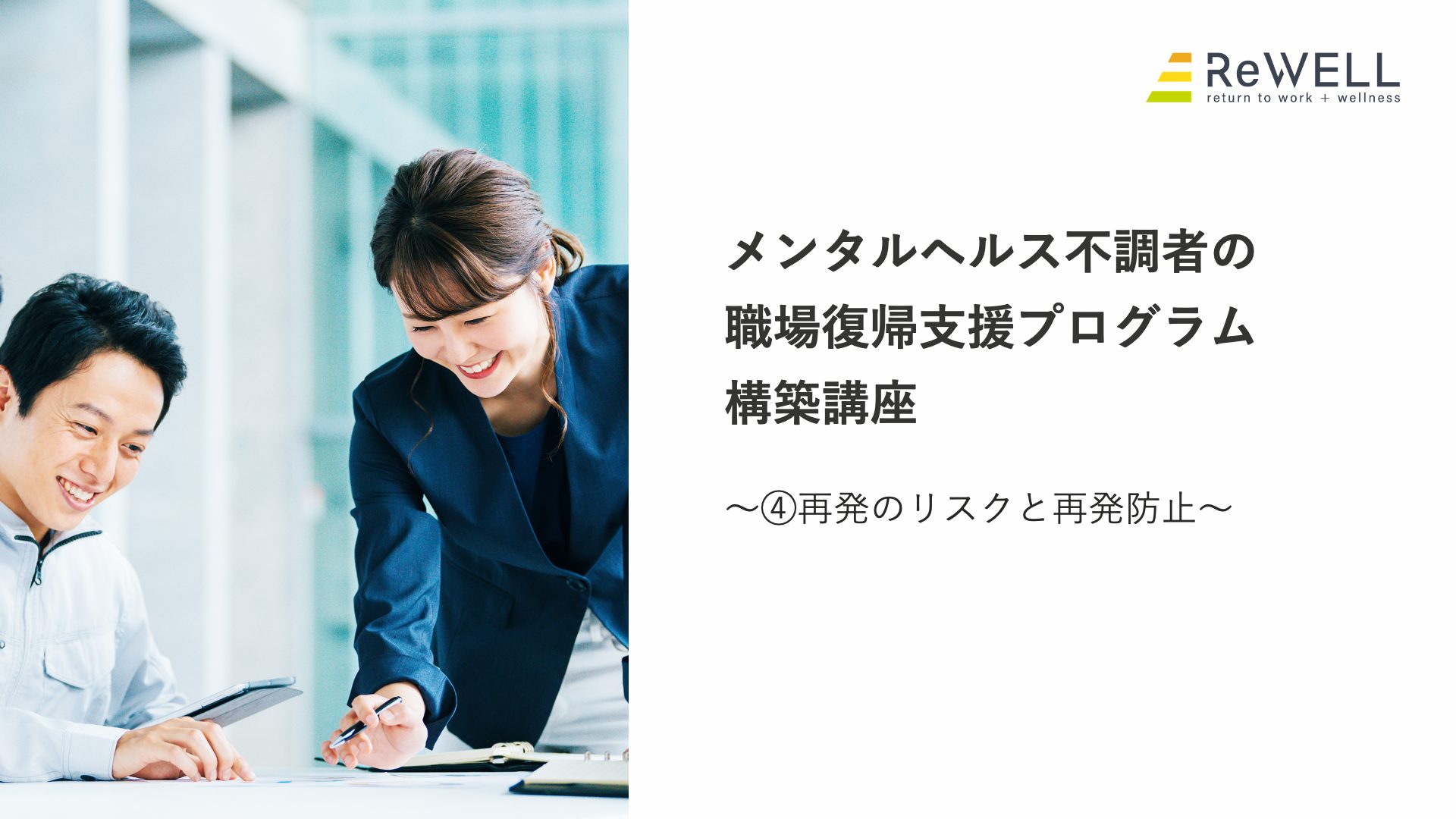 メンタルヘルス不調による休職者数が増加の一途をたどる昨今、企業において休職者の対応を行う機会は、今後益々増えると予想されます。離職や復職後の再発、復職判断に伴う揉め事など、多くの問題が発生しやすい休復職対応は、同時に、生産性の低下や採用・教育コストの増加、傷病手当金や賃金保障負担の増加、ブランドの低下など、企業全体に影響を及ぼす問題へと発展する可能性があります。 では、そのような問題の発生リスクを減らす、企業が行うべき正しい休復職対応とは具体的にどのようなものなのでしょうか。本講座は、企業が行うべき「メンタルヘルス不調者の職場復帰支援」の実践的な方法を全6回の動画にまとめました。企業や個人の復職支援について多くの実績をもつ館野先生が、厚生労働省が提示する「職場復帰支援プログラム」を基に、より具体的な運用方法を解説します。 講座の最後には「メンタルヘルス不調者の職場復帰支援」の実施をサポートする各種復職支援サービスについてもご案内いたします。