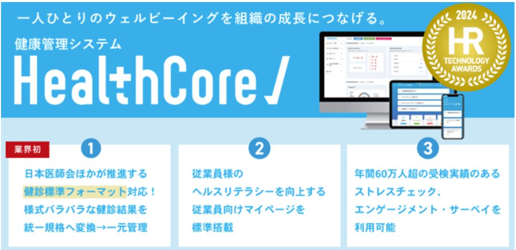 ※HealthCore(Co-Labo、Qraft)は、株式会社ヒューマネージが運営・開発、株式会社エムステージが販売する健康管理システムです。